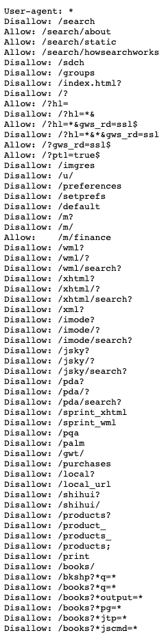일부만 캡쳐했는데도 Disallow가 상당하고, User-agent 가 *