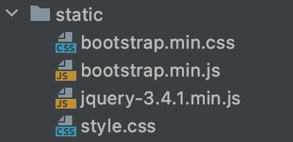 부트스트랩과 제이쿼리가 static 폴더 안에 담겨있다.