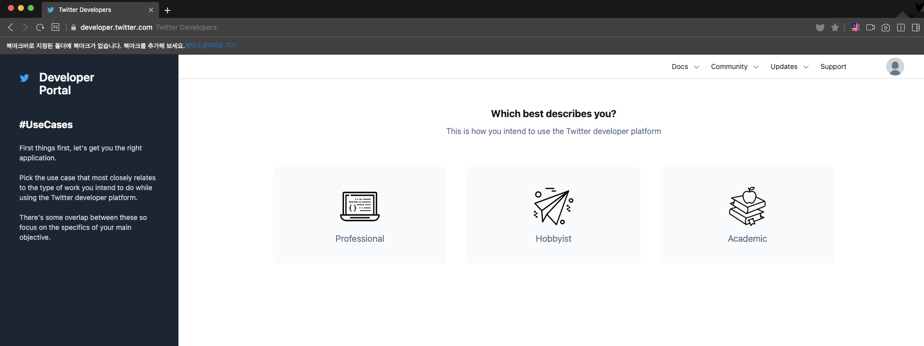 Apply for a developer account를 눌러 다음 단계에 진입해본다.