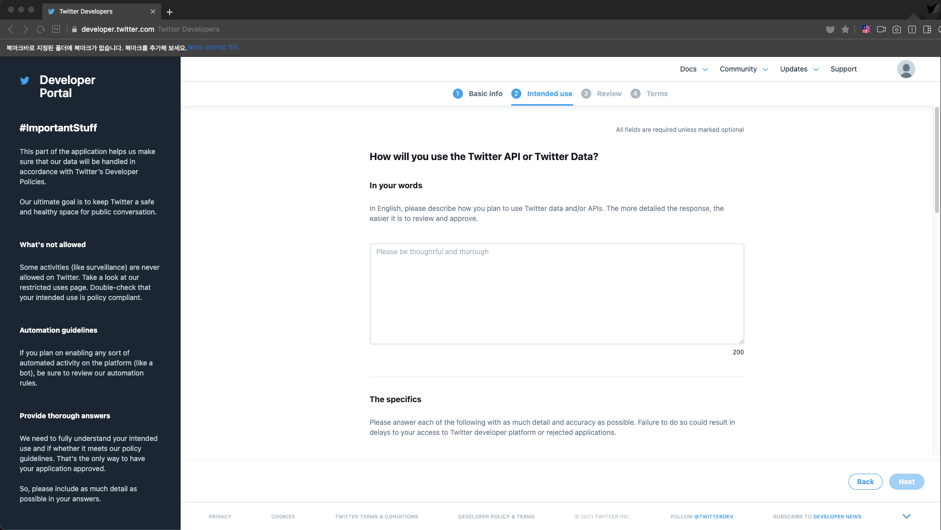 트위터 API를 사용하려면 우선 트위터 계정이 필요하고, 개발자 신청이 통과 되야한다.