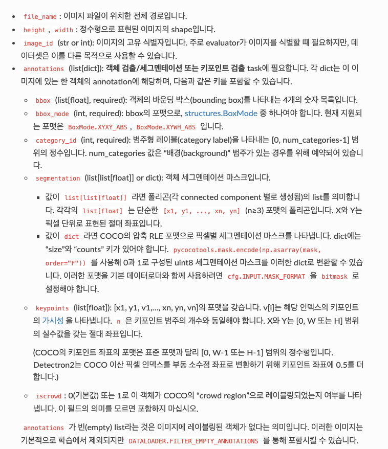 detectron2의 표준 데이터셋은 아래와 같다.