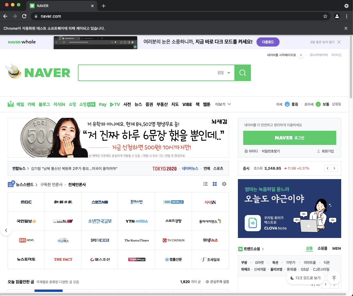 네이버 화면이 정상적으로 출력되는가?