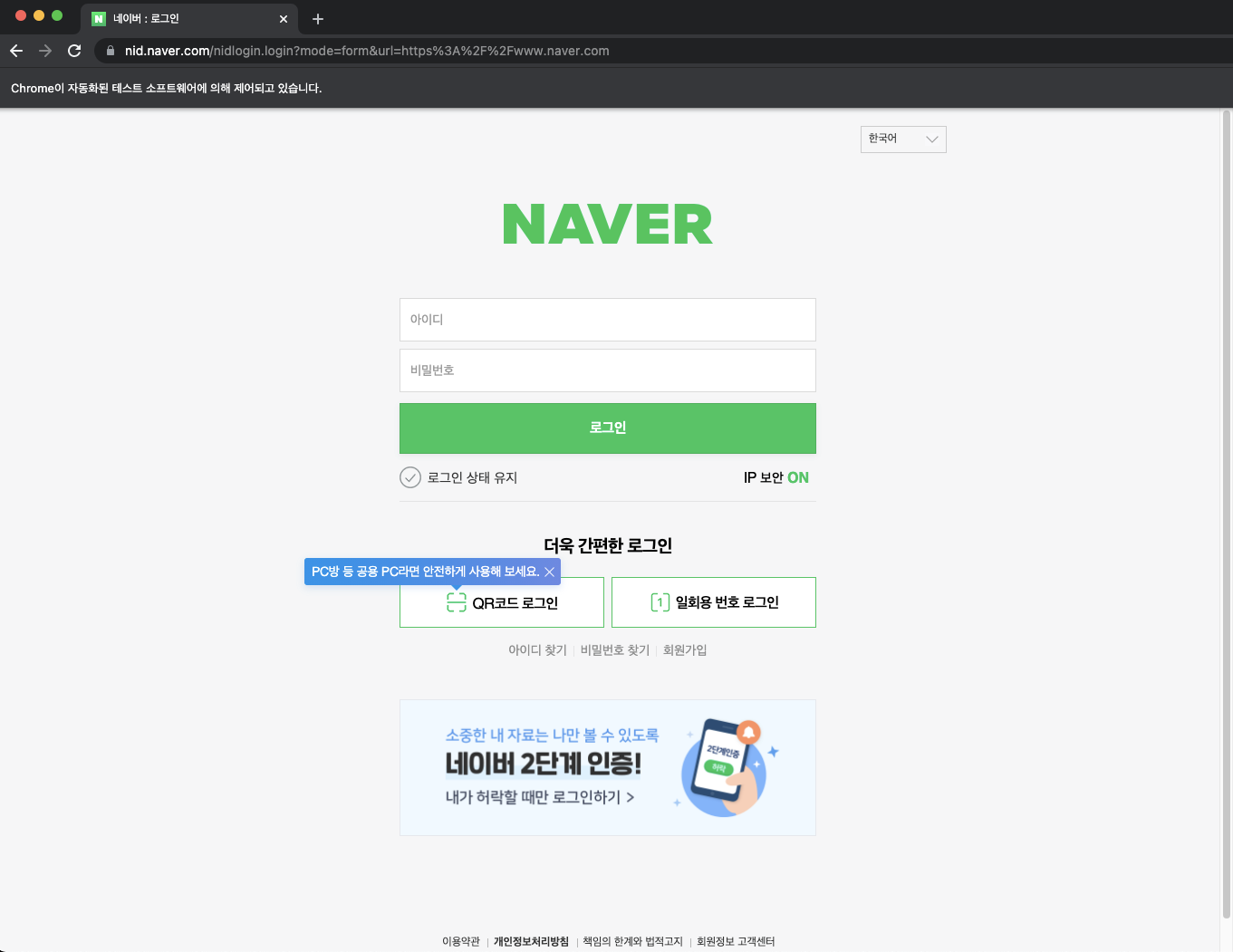 규모가 큰 사이트들은 로그인에 이렇게 자동 로그인 방지장치를 넣으니 유의해두자.
