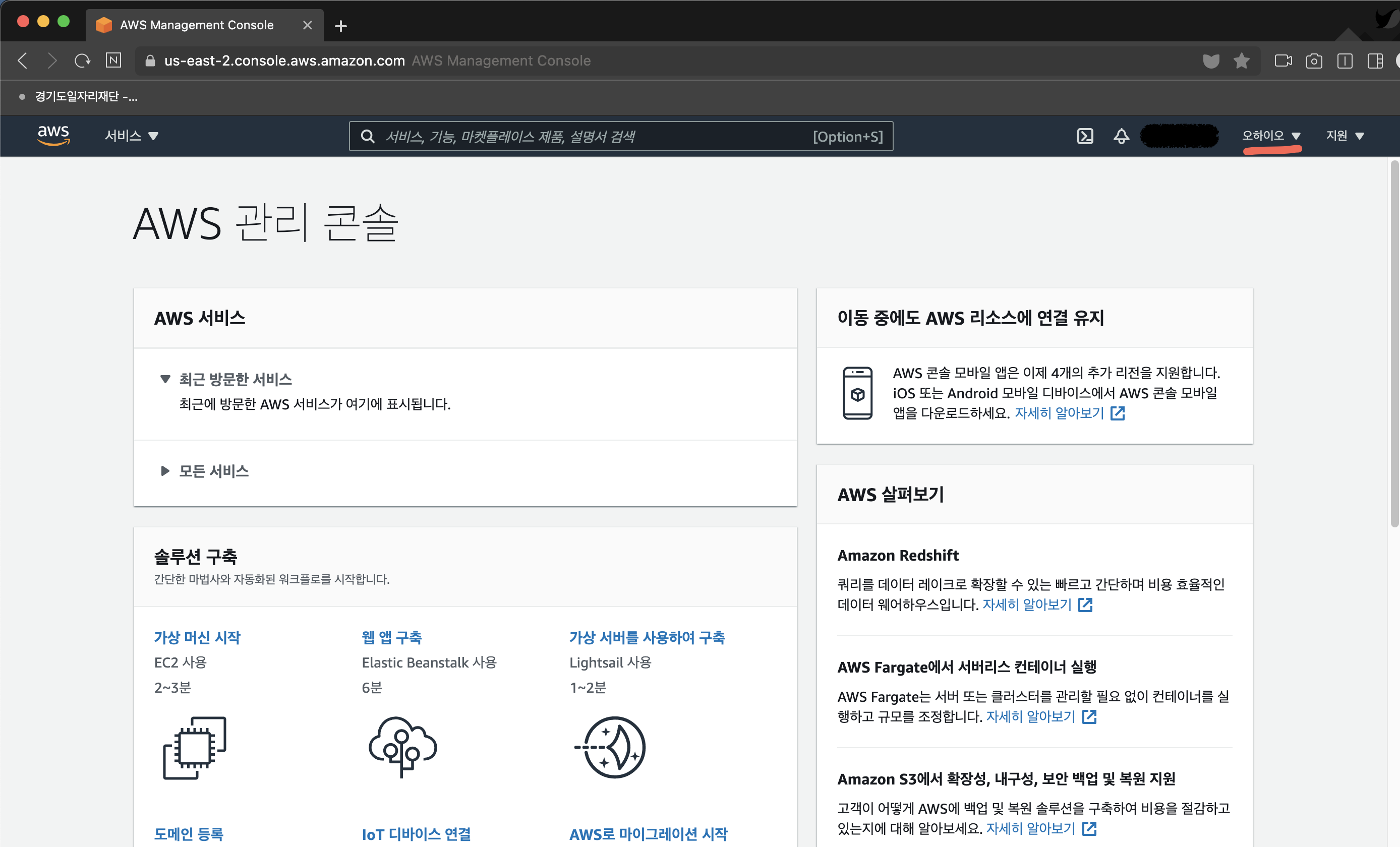 아마존 계정을 생성했다면. 이제 콘솔에 로그인해서 본격적으로 서비스를 활용해보자. 우선, 아래 그림에서 밑줄 친 오하이오를 서울 리전으로 바꾸자. 그 다음 가상 머신 시작 ( EC2사용 ) 사용할 가상머신을 정해야하는데, 나는 ubuntu를 사용한다. 프리티어인 우리는 선택지가 별로 없다. 고맙게도 우분투는 사용가능하다. 18.04LTS로 x86 64비트를 선택한다. 프리티어가 사용 가능한 인스턴스는 t2.micro 밖에 없다. 1코어에 메모리 1기가. 내려보면 1년 무료 평가판 인스턴스가 있다. 무려 cpu가 두배. 하지만 굳이 하는 생각으로 다음으로 넘어가자. 스토리지는 30GB까지 무료 지원인데 기본값이 8GB이다. 원한다면 늘려주지만 굳이 필요하지않다거나 걱정되면 그냥 넘어가자 다음은 보안설정인..